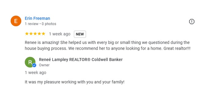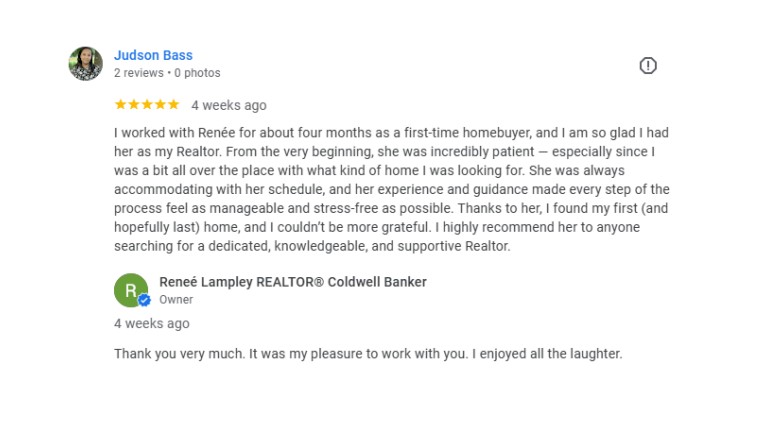 "Renee is amazing! She helped us with every big or small thing we questioned during the house buying process. We recommend her for anyone looking for a home. Great Realtor!!!"